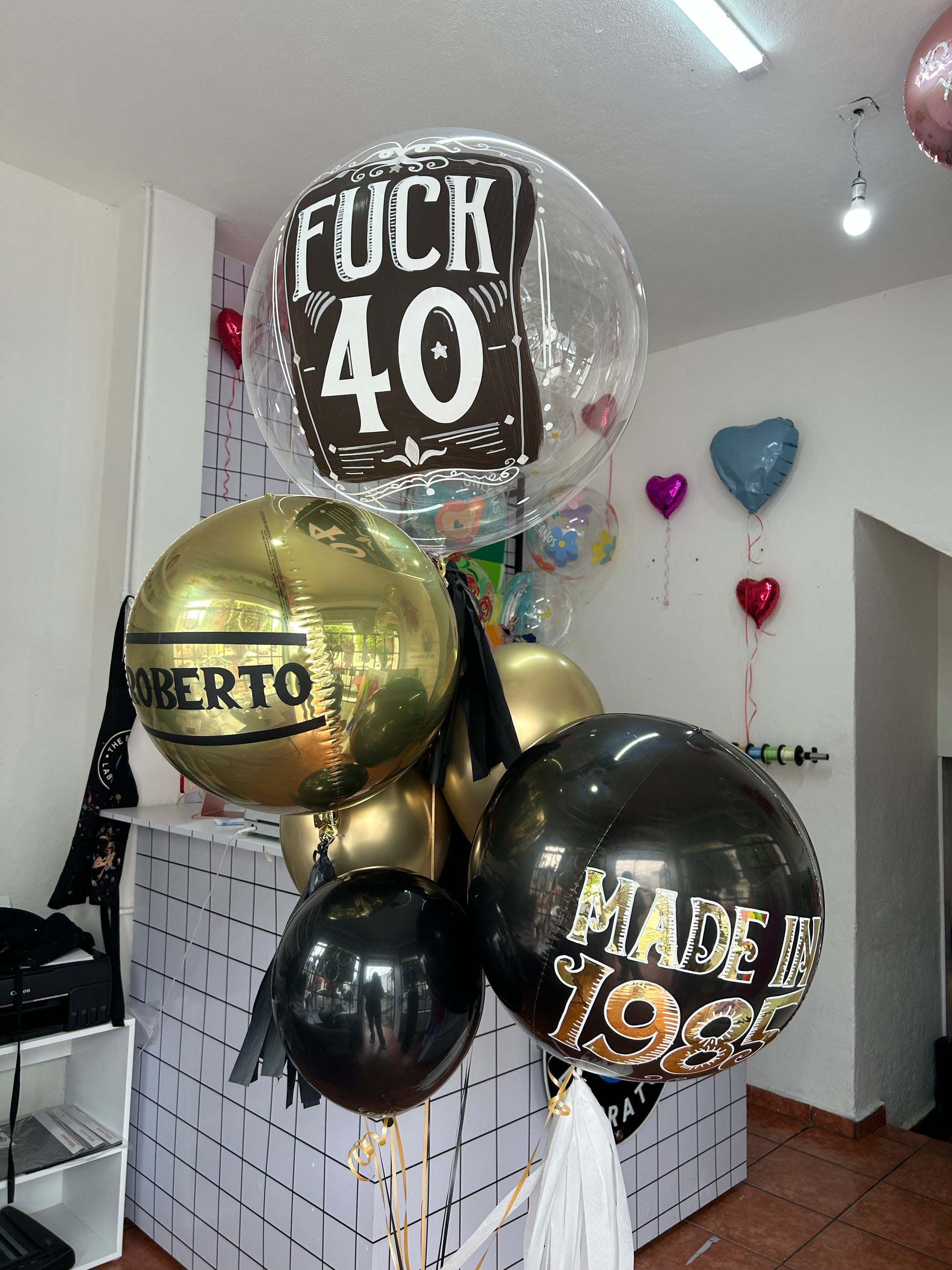 - Globo burbuja transparente con diseño vintage + 2 orbz + 5 látex 12". Favor de especificar en las indicaciones especiales el texto de su elección.