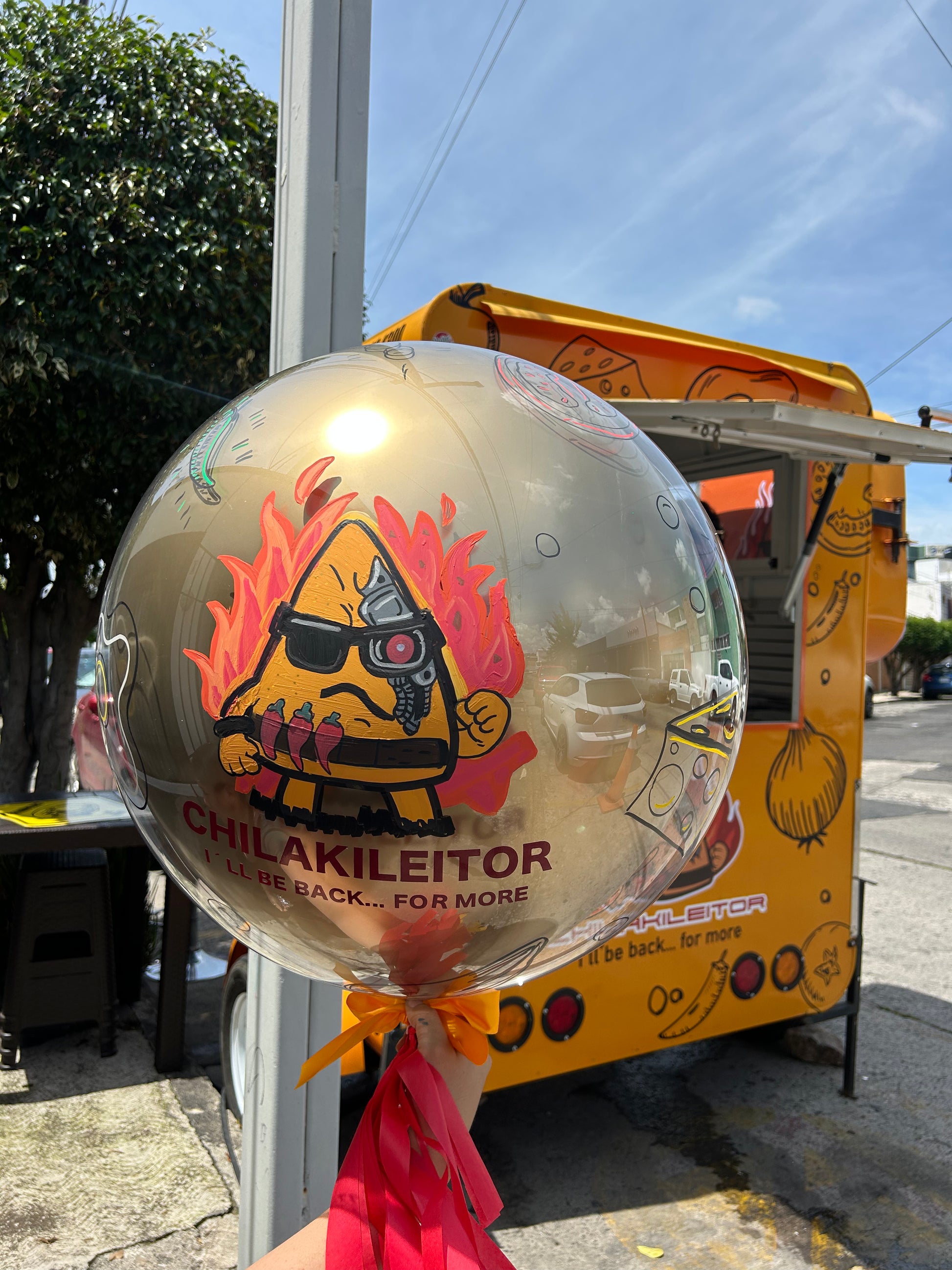 - 1 Globo burbuja transparente con globo látex 24" + personaje pintado por fuera. Favor de especificar en las indicaciones especiales el color del globo látex 24" y el texto de su elección.